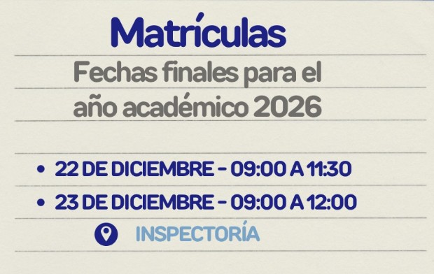 El establecimiento informa a la comunidad educativa que se encuentra disponible la información oficial correspondiente al proceso de matrícula para el año académico 2026, dirigida tanto a estudiantes antiguos como a estudiantes nuevos.